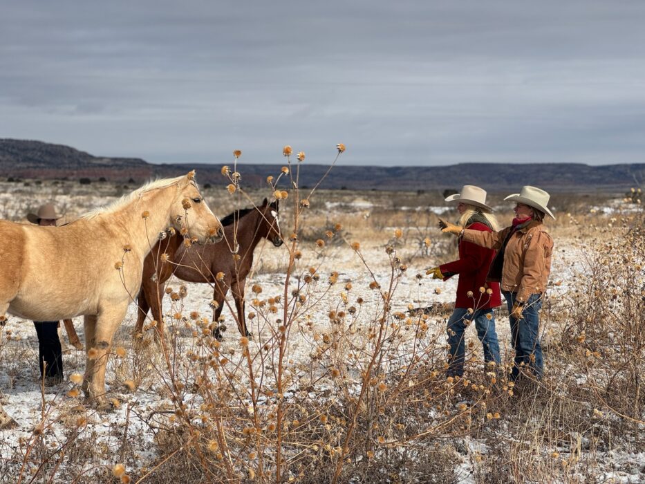 That’s how my day started with Lynn Ray and her horse, Turbo, out on the family ranch in Albert, New Mexico. The crew had already nicknamed me Turbo, too—but trust me, this horse was far calmer than his name suggested. Before we rode off, I had one big distraction to address—the chickens.